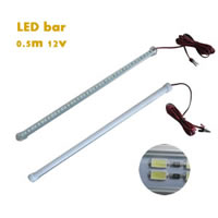- Our camping strip light is brighter and stronger. Input voltage is 12V, with 144 pcs LEDs 1400LM output. It has cigarette plug and 5 meter extension lead. Velcro tape and detachable hooks enable you to position the light at liberty. Sports carrybag store the light and wire neatly. Smart switch can be used either for dimming or for color changing.