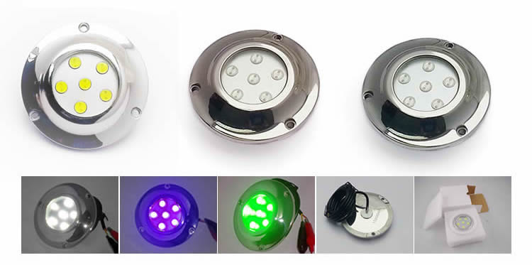 Item type: Underwater Lights Power(W): 9W Beam Angle(°): 160° Application: Yacht/marine/boat lighting Input Voltage: 10-30V Product size: Φ90*H18mm Installation: Surface mount IP Rating: IP68 Body Material: SS316 Unit pack weight: 0.35kg Port: wire Power Cord: 2M φ4mm teflon cable