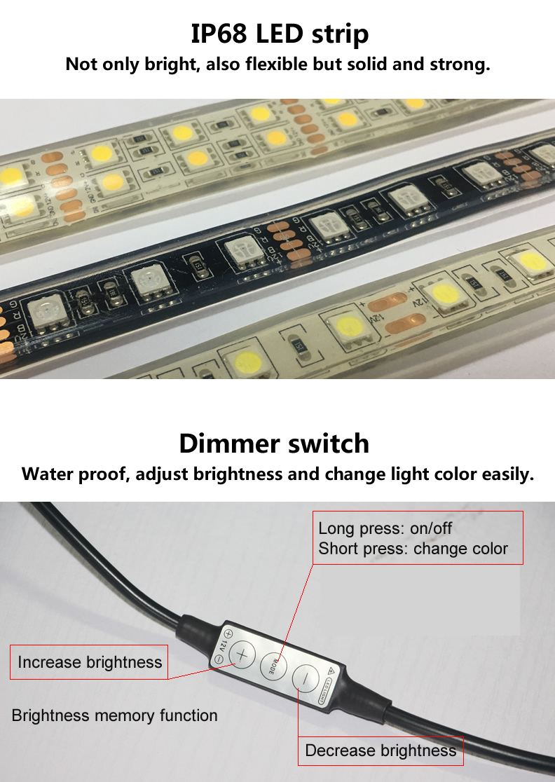 This undersal strip light has Velcro hooks in the back, and adjustable hooks in its two ends. It makes the light can be installed very conviniently in different enverionment. Its water and dustproof LED strip can work well enven in heay rain. It has five meter cable and one inline waterproof switch. Its cigarette plug can get power supply from car battery. It can also be supplied by other power sources, just by adding relative socket. It is mostly used for outdoor camping lighting. Even if not for camping it will be a very useful backup lighting equipment for car or boat.