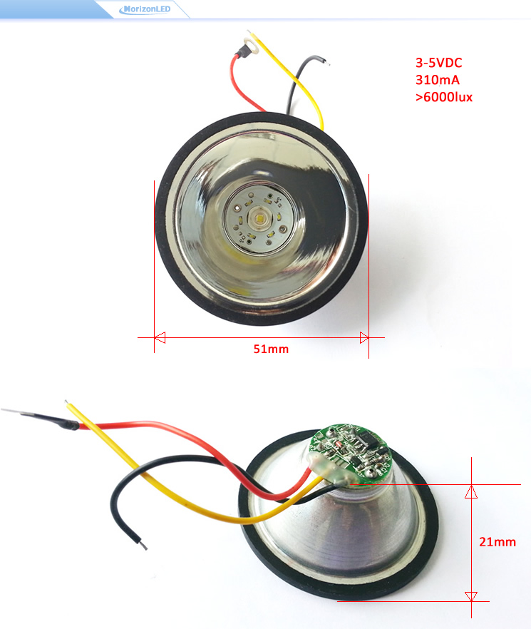 Item type: LED Modules Power(W): 1W Beam Angle(°): 15° Application: Mining lighting Input Voltage: 3-5V Product size: Φ56*H20.5mm Installation: IP Rating: N/A Body Material: Aluminum Unit pack weight: Port: Ring Power Cord: red,green,yellow, black